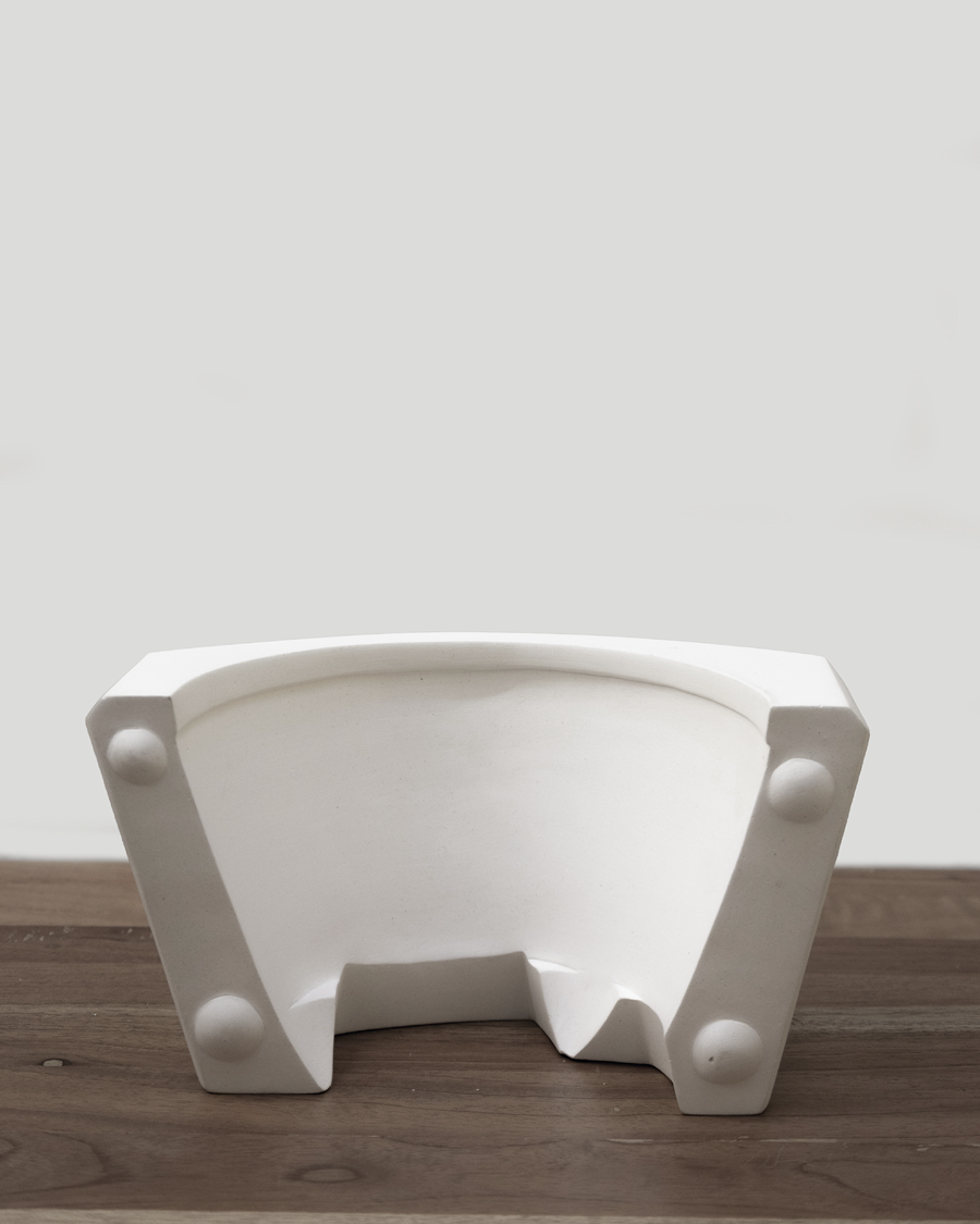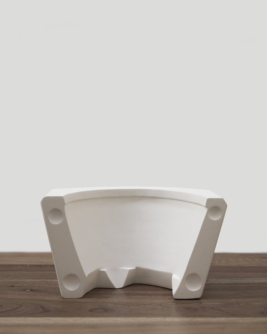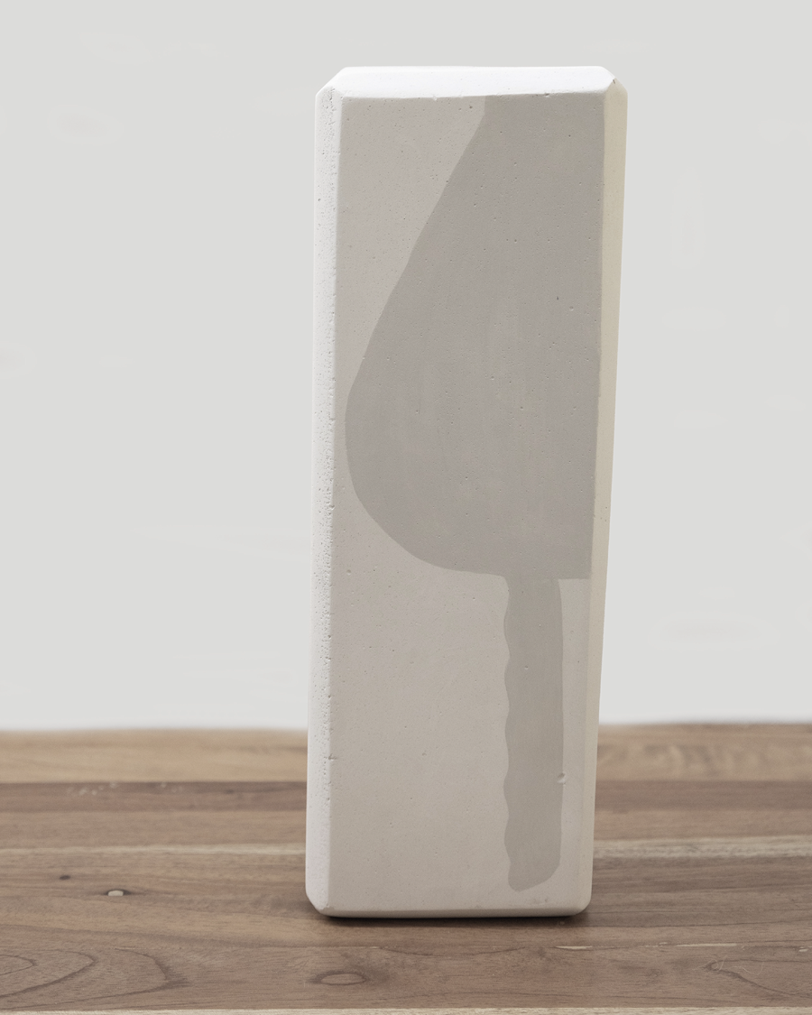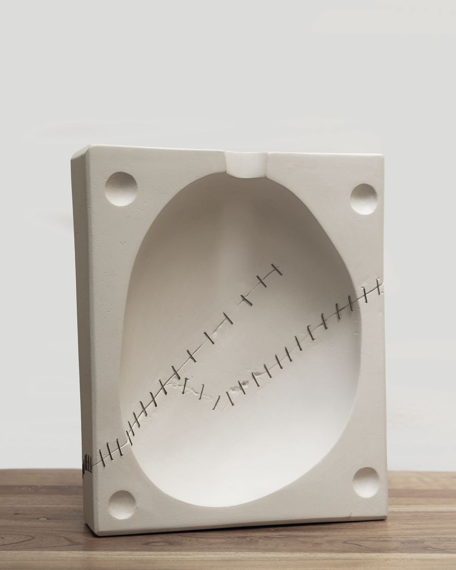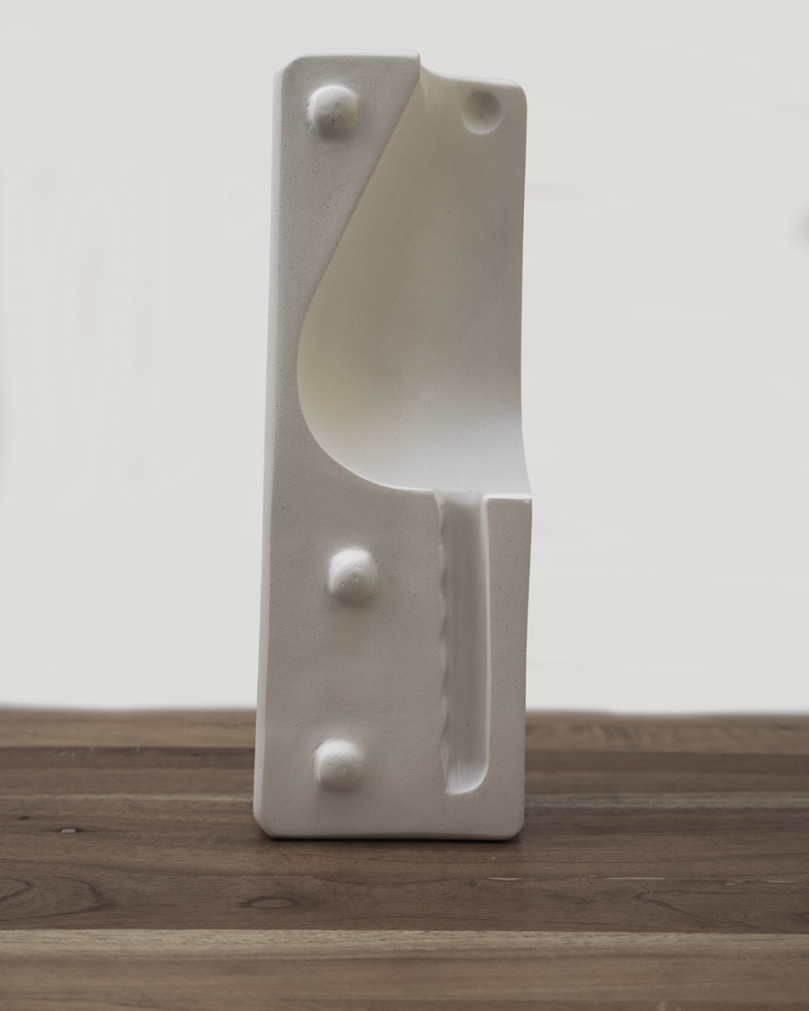 “Espacio concreto”, su más reciente serie, parte de llevar esa observación de la forma un paso más allá, indagando ya no solo por los límites que definen los objetos y que podrían crear nuevas estructuras, sino reflexionando sobre el espacio que las origina: su matriz…. el negativo.