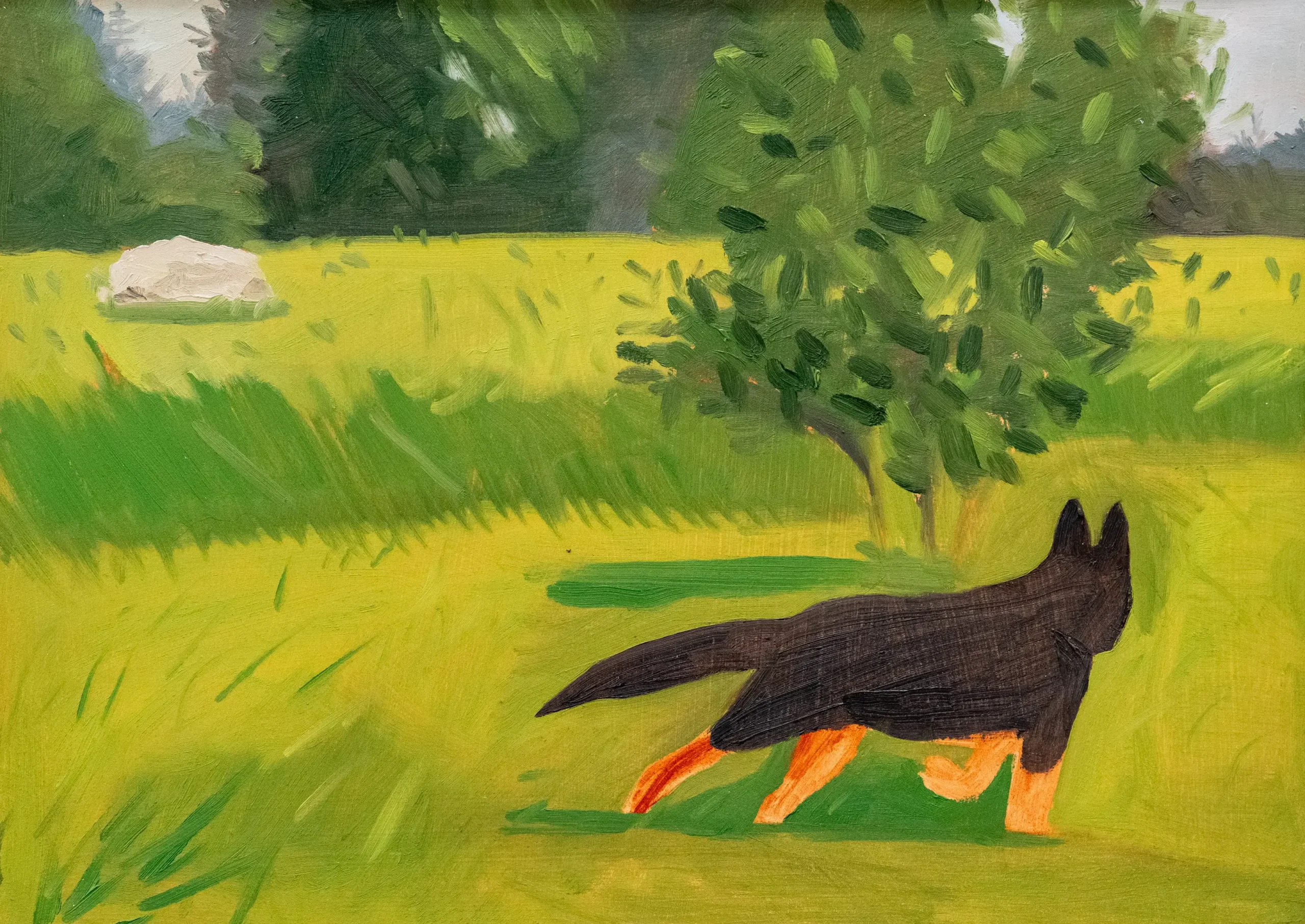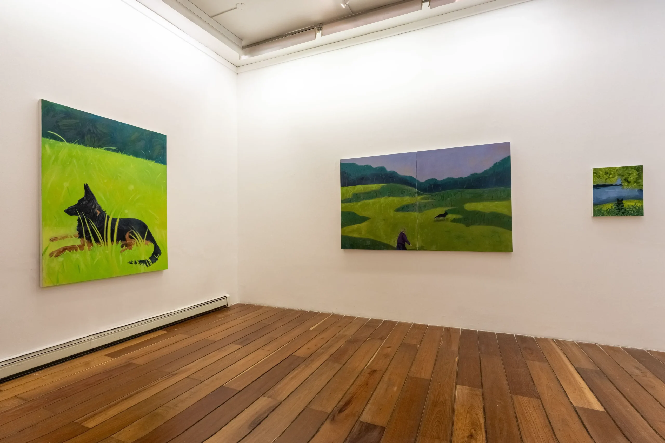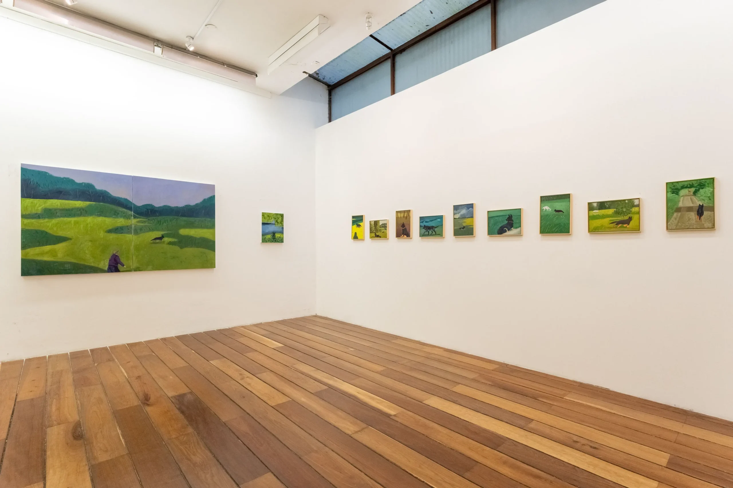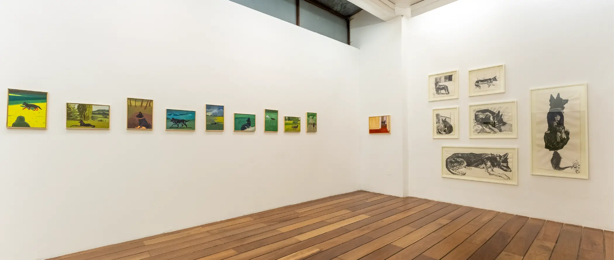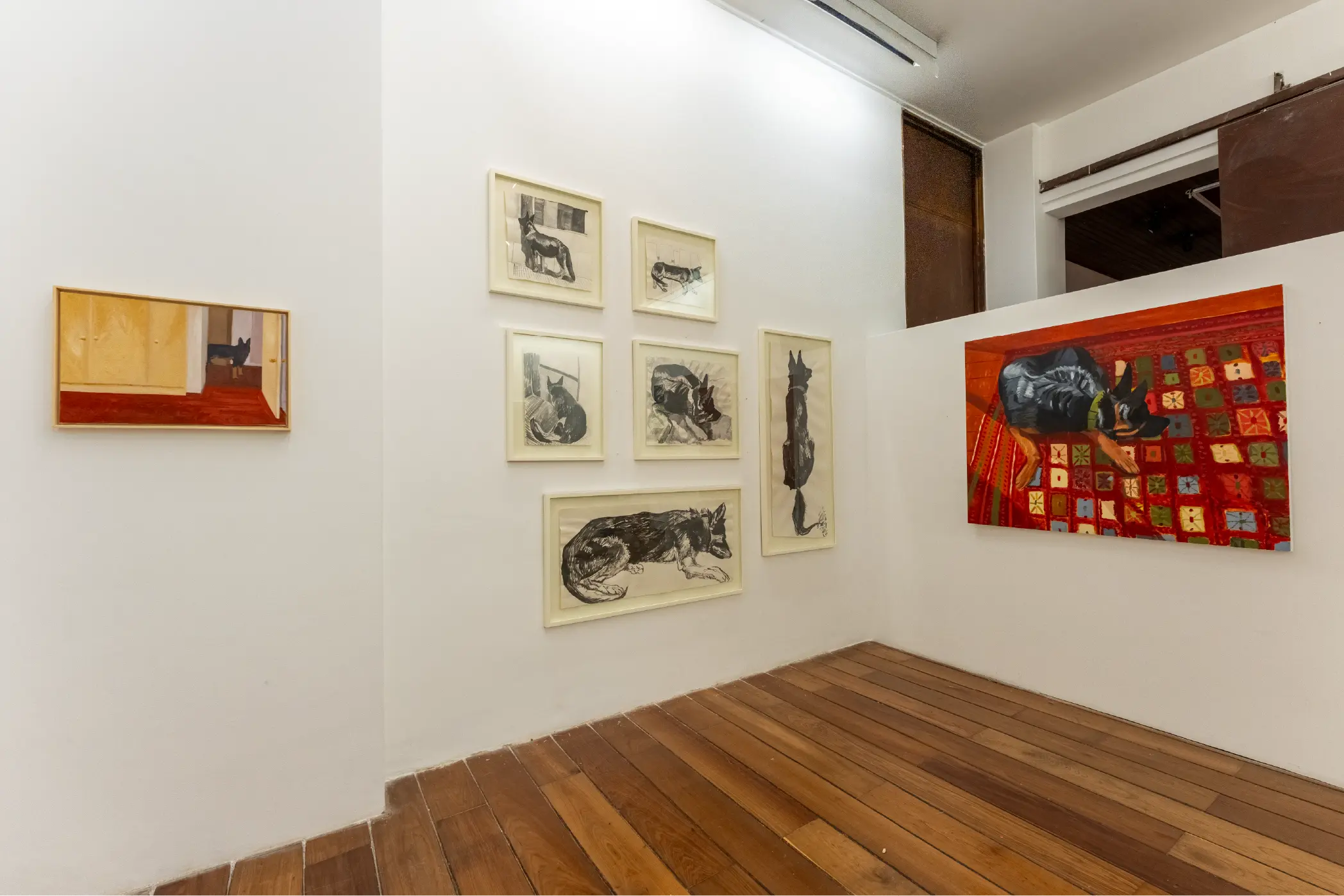 En la serie Good Boy, Luisa Montoya aborda una experiencia reciente: la convivencia con su perro durante sus dos primeros años. Es un tema que puede parecer trivial dentro de las exigencias del arte contemporáneo. Pero hasta David Hockney enfrentó una duda similar cuando decidió pintar a sus perros en la serie Dog Days, cuestionando si lo cotidiano sostenía una obra y si era realmente “válido” pintar un animal doméstico. En Dog Days, los perros encarnaron vivencias, al igual que Elvis en la serie Good Boy de Luisa Montoya.